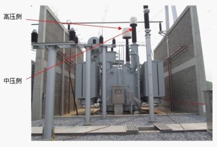 该变压器有中压侧,所以一次加压需要同时测试高压侧和中压侧的局部放电情况。为了防止起晕在高压侧和中压侧的套管上端都加了防晕罩,