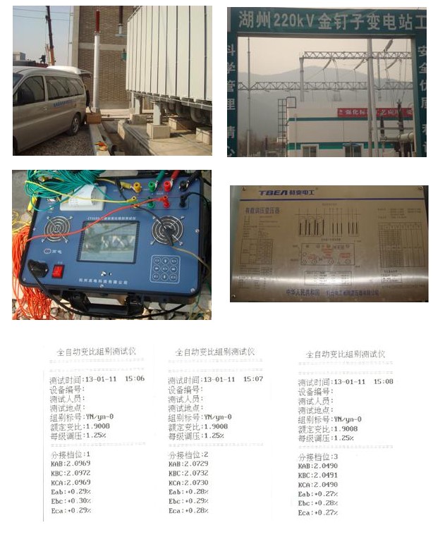 2013年1月11日,我司技术员人在湖州金钉子220KV变电所现场,使用本司新升级的V1.8版CT3103全自动变比测试仪进行了现场测试,测试了特变电工生产的SZZ-240000/220电力变压器,以下为第1-3档数据:
