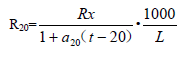 温度20℃时每公里长度芯线直流电阻值(R20)换算公式: