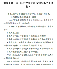 ? 企业通过我办许可管理系统,进行电力业务资质许可有关事项申报(前审后批方式)时,应统一使用我办制定的《告知承诺书》(详见附件2、3、4、5、6)并在系统内提交,无需上传取消的证明材料和申请表。