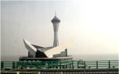 清晨,全体员工在公司集合,乘坐大巴直奔第一个景点——雄伟的“杭洲湾跨海大桥”。此桥又名“彩虹桥”,双向六车道,全长36公里。穿越大桥之时,天公作美,清晨的雾气已慢慢散去,我们兴致勃勃地观赏着沿桥两侧的风景。大海一望无际,因还有少量余雾,天蒙蒙海蒙蒙,海天一线,我们此时倒很期待能有一幅海市蜃楼的景观,然而奇迹却最终没有出现。大桥的中段,海上观望台似一只孤傲的雄鹰,毅然屹立在这无边的海上,仿佛是杭洲湾跨海大桥的守护神。在导游的介绍叙述中,我们了解到此桥长度在目前世界上在建和已建的跨海大桥中位居第一!让我们为国人的卓越的智慧和能力而由衷的骄傲。