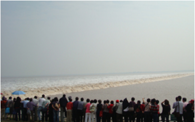 来到这个名闻遐迩的潮乡,怎能不上观潮亭?怎能不等那天下闻名的钱塘江涌潮?我们捷足而登,热切期盼。当亲眼目睹壮观的钱江潮水来临的那一刻,一派排山倒海的气势,犹如万马奔腾的军阵,我们欢呼、我们震撼,我们无法自已,深深的为大自然的神奇造化而折服!人在其边顿感渺小,涤荡心中的浊气,心胸也为之开阔。