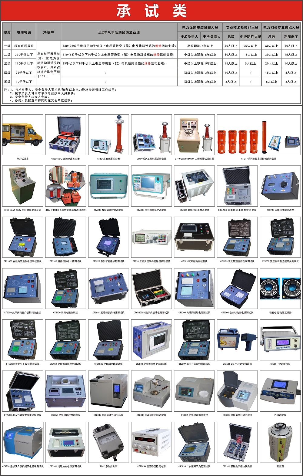四级:35千伏以下 | / | / | 初级以上职称,3年以上 | 10人以上 | / | 15人以上 | 8人以上 | |